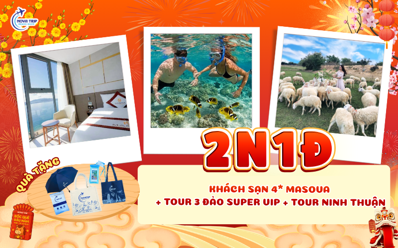 Combo 2N1Đ: Khách sạn 4 sao MASOVA + Tour 3 Đảo Super Vip – Ninh Thuận