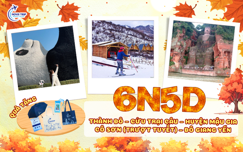 Tour Thành Đô – Cửu Trại Câu – Gia Cô Sơn – Đô Giang Yển 6N5Đ là hành trình du lịch Trung Quốc độc đáo, kết hợp giữa vẻ đẹp thiên nhiên hùng vĩ, văn hóa đặc sắc và trải nghiệm mùa đông mới lạ. Chuyến đi khởi hành từ Hà Nội với chặng bay thẳng cùng hãng hàng không Bamboo Airways, mang đến trải nghiệm nghỉ dưỡng trọn vẹn – từ “thiên đường hạ giới” Cửu Trại Câu đến khu trượt tuyết Gia Cô Sơn đầy thú vị.