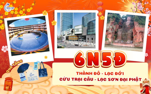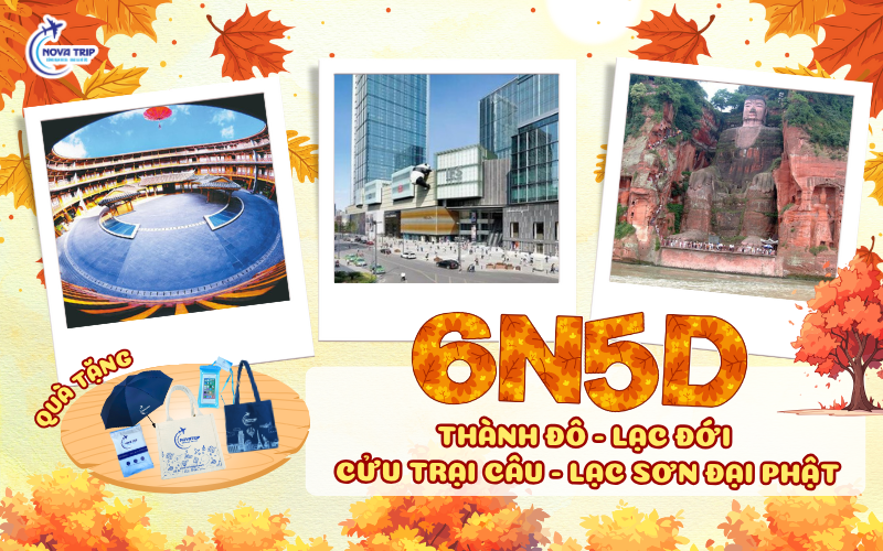 Khám phá hành trình du lịch Trung Quốc ấn tượng cùng Nova Trip – tour Thành Đô – Lạc Đới – Cửu Trại Câu – Lạc Sơn Đại Phật 6N5Đ, bay thẳng từ Hà Nội. Tour shopping hấp dẫn, kết hợp tham quan những danh thắng nổi tiếng bậc nhất Tứ Xuyên, từ “thiên đường hạ giới” Cửu Trại Câu đến tượng Lạc Sơn Đại Phật uy nghi, mang đến trải nghiệm vừa trọn vẹn, vừa đáng nhớ.