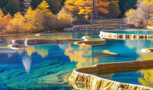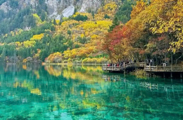 Bạn sẽ được chiêm ngưỡng cảnh sắc Cửu Trại Câu – thiên đường mùa thu nổi tiếng toàn thế giới với hồ nước xanh biếc, rừng phong rực rỡ và những thác nước trắng xóa như dải lụa. Ngoài ra, tour còn đưa du khách khám phá Lạc Sơn Đại Phật – tượng Phật đá lớn nhất thế giới, công viên gấu trúc Đô Giang Yển, cùng cổ trấn Lạc Đới đậm nét văn hóa Tứ Xuyên cổ kính.