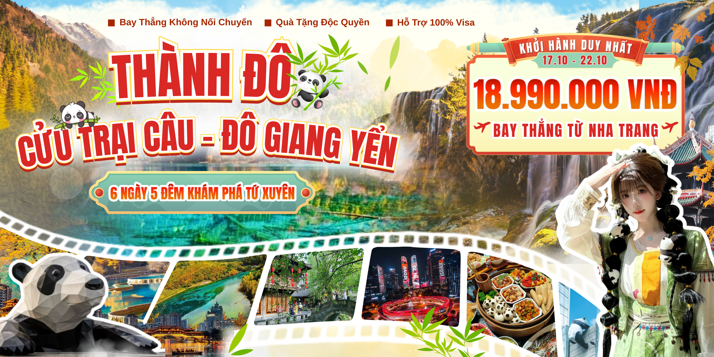 Tour Nha Trang – Thành Đô – Cửu Trại Câu – Đô Giang Yển 6N5Đ | Bay thẳng Cam Ranh