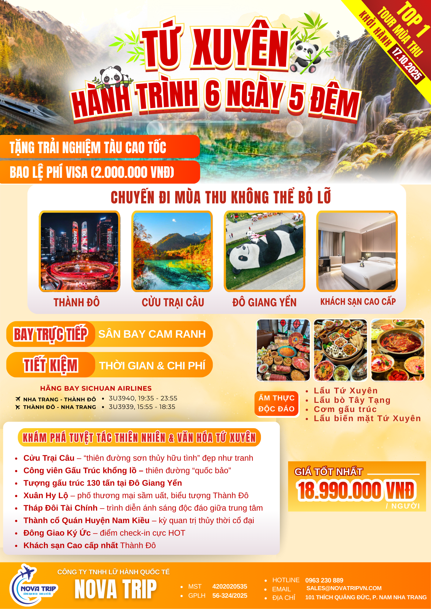 - 6 NGÀY 5 ĐÊM TỨ XUYÊN KHỞI HÀNH NHA TRANG